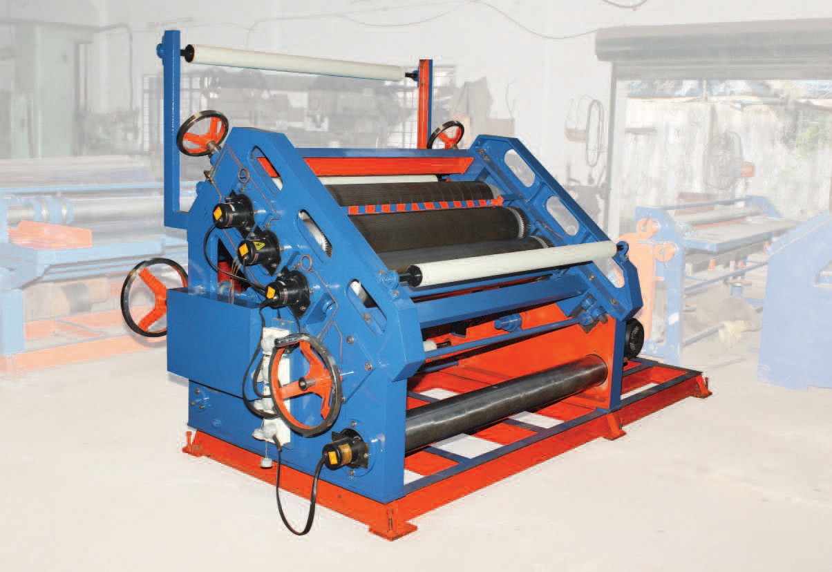- Corrugating roller pressure roller and glue roller adjustment by mechanical or pneumatic.